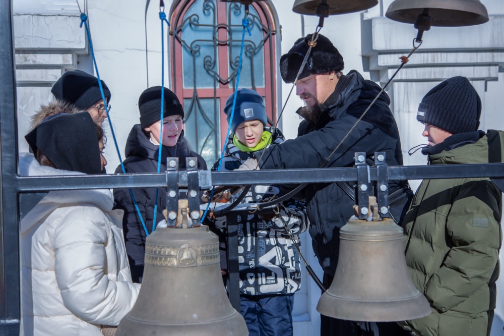 Завершилась экскурсия на территории храма возле передвижной звонницы. Юные экскурсанты смогли попробовать себя в роли звонарей. Такая возможность вызвала у детей большую радость и оживление.