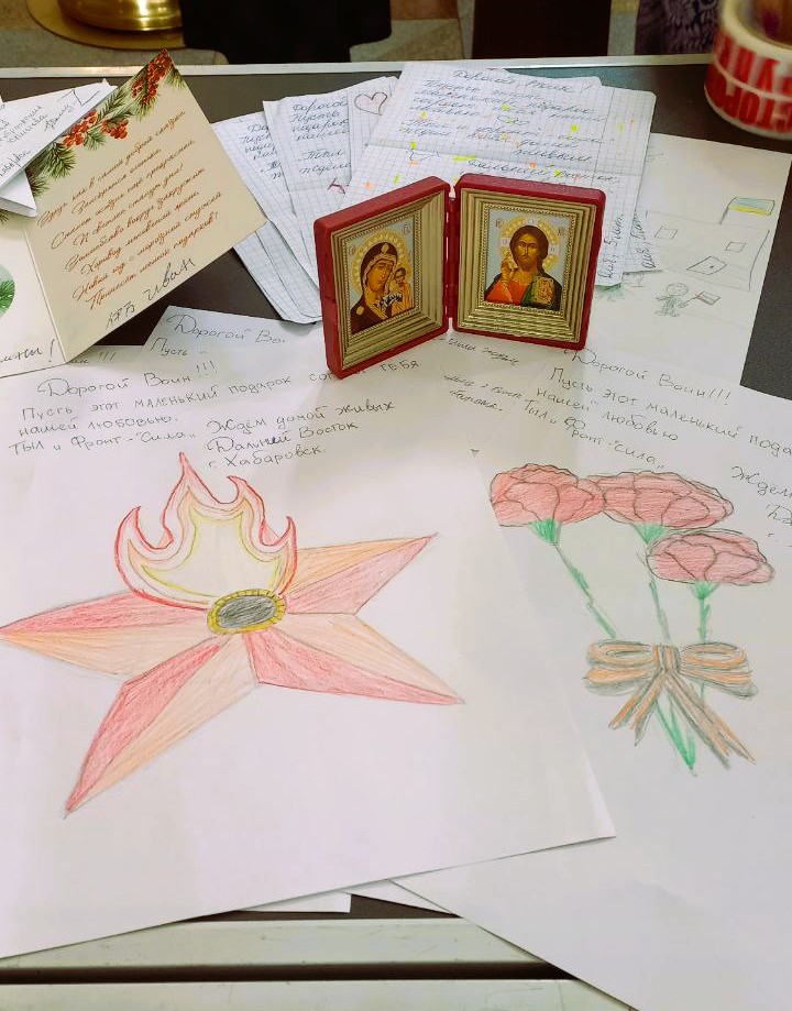 Жители Хабаровска принесли все самое необходимое для нужд фронта, а дети передали свои теплые письма и рисунки.