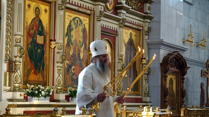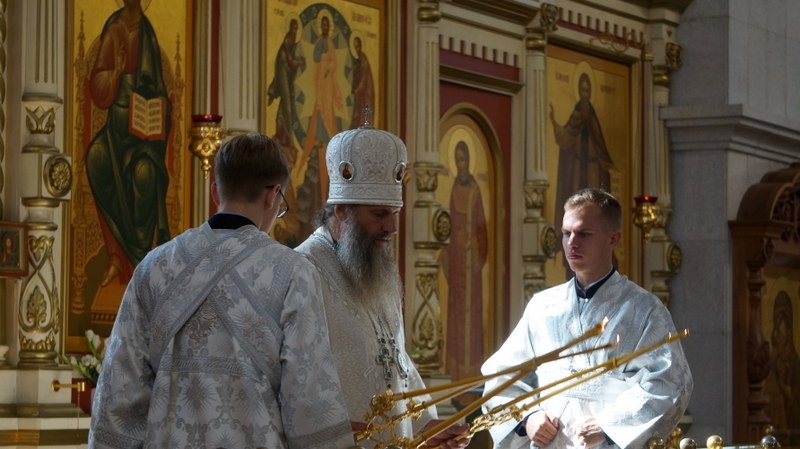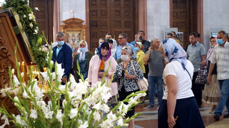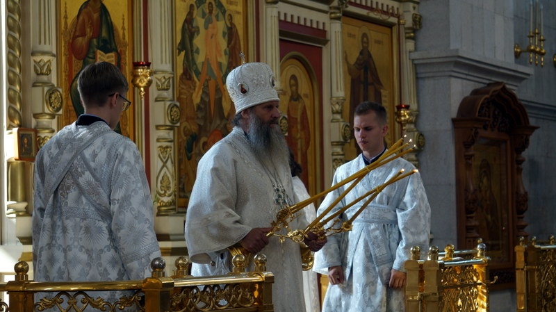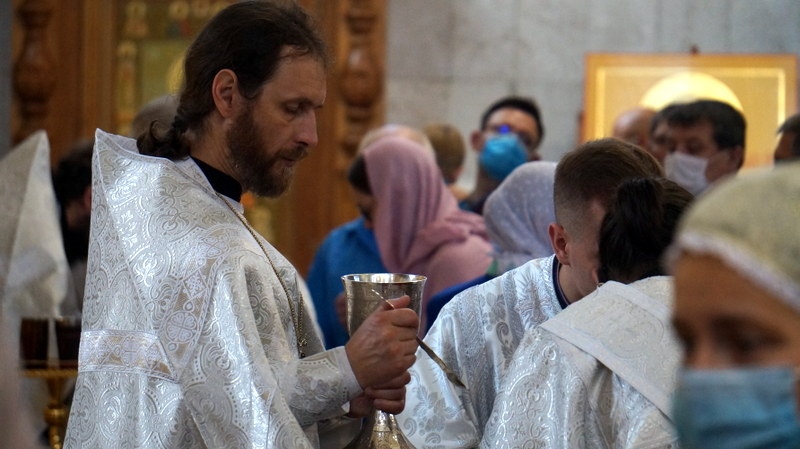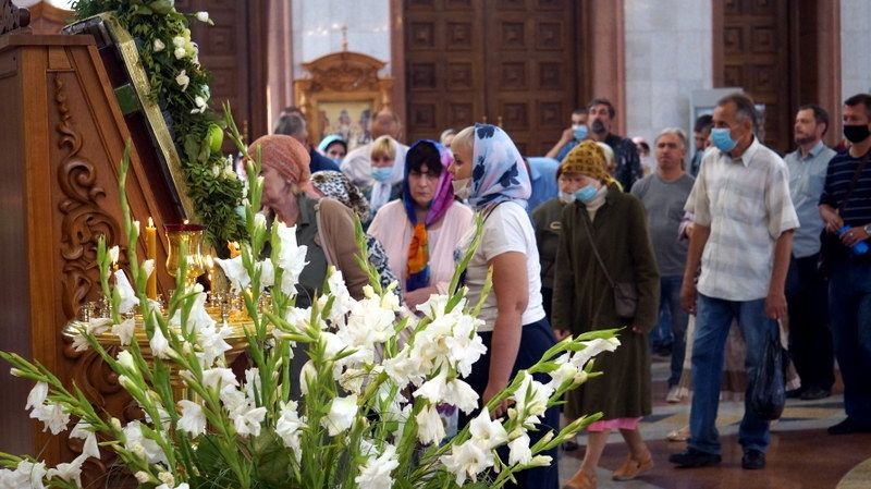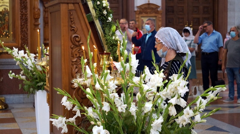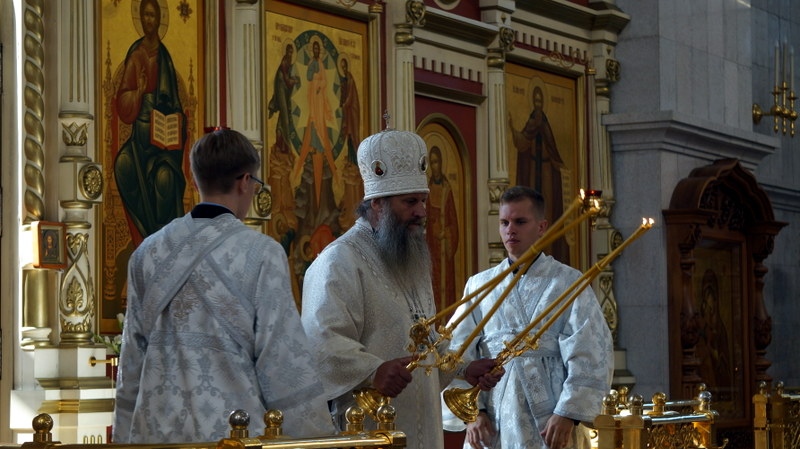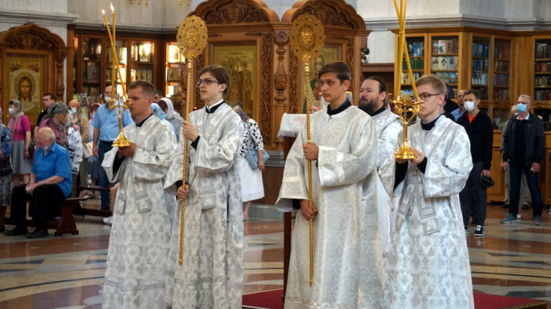 Божественная литургия в Спасо-Преображенском кафедральном соборе 23 августа 2020 г